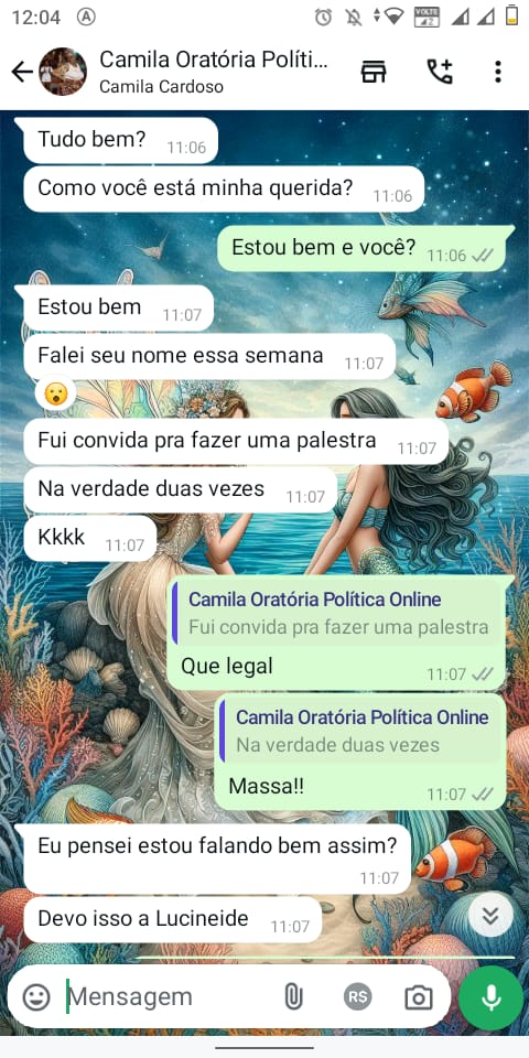 GOSTEI MUITO DE PARTICIPAR DA AULA DE ORATĂRIA DA PROFESSORA LUCINEIDE. DESENVOLVI MINHA CRIATIVIDADE, ORGANIZAĂĂO DE PENSAMENTO, E SUPEREI AS INIBIĂĂES QUE SURGEM, MESMO SENDO PROFESSOR DIANTE DE UMA PLATEIA NOVA.